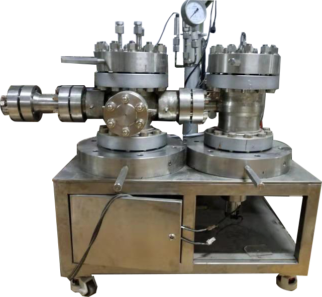 其工作方式為在高壓狀態(tài)下,通過(guò)磁傳動(dòng)技術(shù),實(shí)現(xiàn)栓(球)- 盤(pán)的干摩擦或有固體潤(rùn)滑時(shí)的摩擦試驗(yàn),檢測(cè)材料摩擦系數(shù)的變化,從而得到材料在高壓往復(fù)狀態(tài)下的摩擦學(xué)特性。