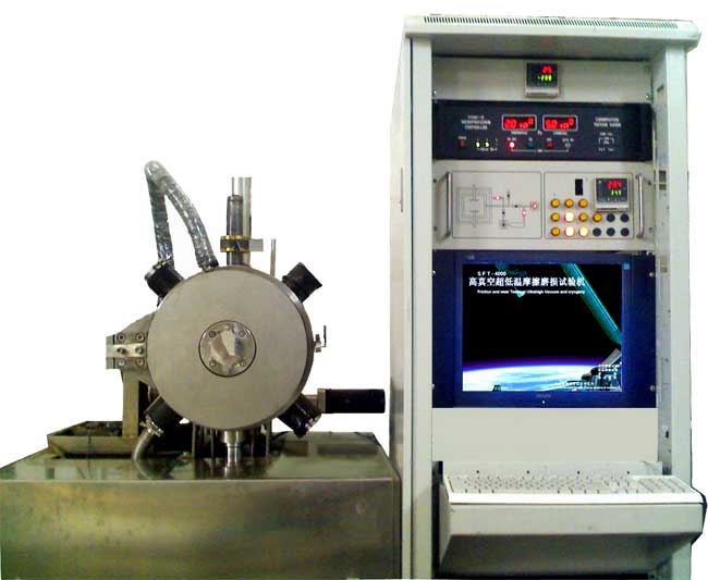 超低溫(超導(dǎo))摩擦磨損試驗儀是用真空泵將真空環(huán)境試驗室抽真空,抽去不必要的氣體及水分,再利用液氮將真空試驗室的溫度降到-180℃以下 , 在低溫下通過磁傳動技術(shù),實現(xiàn)栓(球)—盤之間摩擦實驗,檢測材料摩擦系數(shù)的變化。實驗溫度可以從100℃到-180℃,真空度常壓-10-4Pa,試驗方式為球-盤式。運用計算機控制技術(shù),通過砝碼加載機構(gòu)將負荷加至栓(球)上,作用于試樣表面,同時試樣固定在測試平臺上,并以設(shè)定的速度旋轉(zhuǎn),通過傳感器獲取摩擦?xí)r的摩擦力信號,經(jīng)放大處理,輸入計算機經(jīng)A/D轉(zhuǎn)換將摩擦力信號通過運算得到摩擦系數(shù)曲線。通過摩擦系數(shù)曲線的變化,從而得到各種材料在低溫條件下摩擦學(xué)特性。